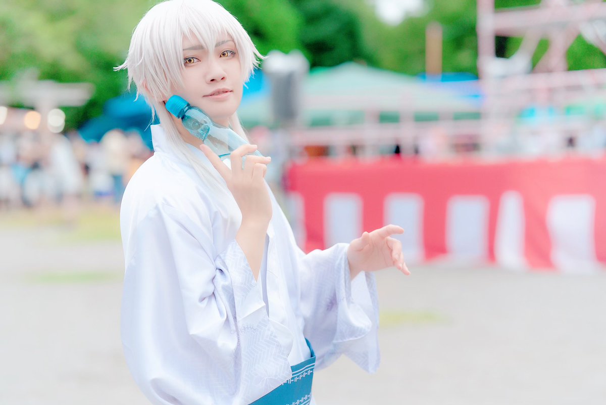 【cos】刀剣乱舞/軽装 こいつは冷たくて驚いた ・・・らむね、ってのかい? 鶴丸国永:神楽 photo:しんやさん(@terns_shinya) #KGR_cos #アコスタ松戸 #松戸ラストサマーフェス ***