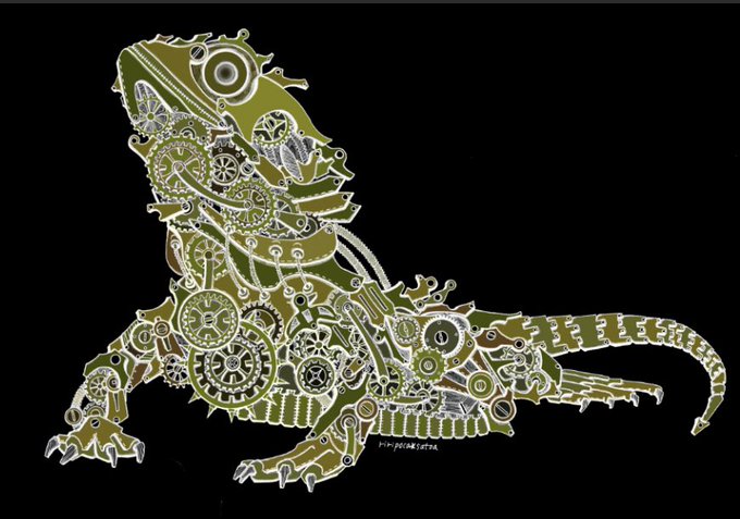 お疲れ様でした✨✨ ⚙爬虫類だらけ⚙ #アゴフトヒゲトカゲ #イグアナ #カメレオン #ワニガメ #スチームパンクイラスト #歯車イラスト #ペン画 #3時間でフォロワー何人増えるかチャレンジ