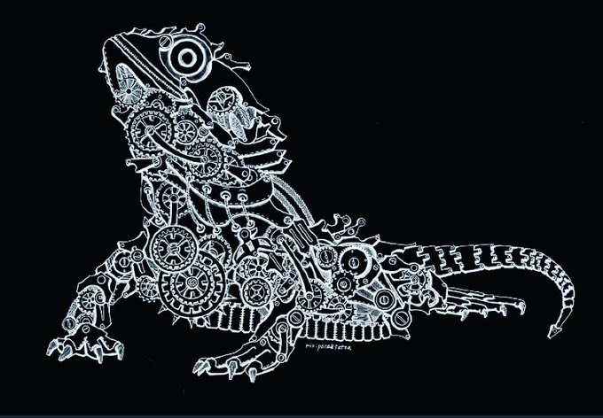おはようございます✨✨ 今日もよろしくお願いします(≧∀≦) ⚙アゴフトヒゲトカゲ⚙ #アナログ絵 #ペン画 #スチームパンクイラスト #歯車イラスト #アゴフトヒゲトカゲ #絵描きさんと繋がりたい