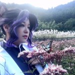 【Cosplay】 君 想う… •┈┈┈••✦☪︎✦••┈┈┈• ・胡蝶しのぶ / @YukiSakura210 #アサギマダラの郷 #川ロケ撮影 #アサギマダラ #フジバカマ #アサギマダラファンクラブ #鬼滅の刃コスプレ #胡蝶しのぶコスプレ