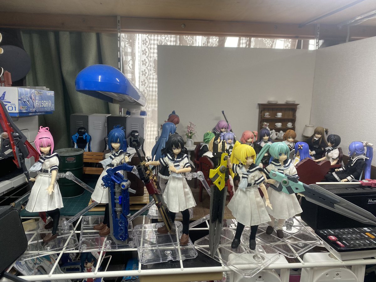 #アサルトリリィドール8周年 ということで、おめでとうございます♪ 私的にも、初めての鶴紗ちゃんをお迎えして、丸1年経ったとこです。 全員集合で記念写真といきたかったのですが、どうにも収まらなかったので、百合ヶ丘とルド女の娘達で。 #アサルトリリィ #アサルトリリィドール部