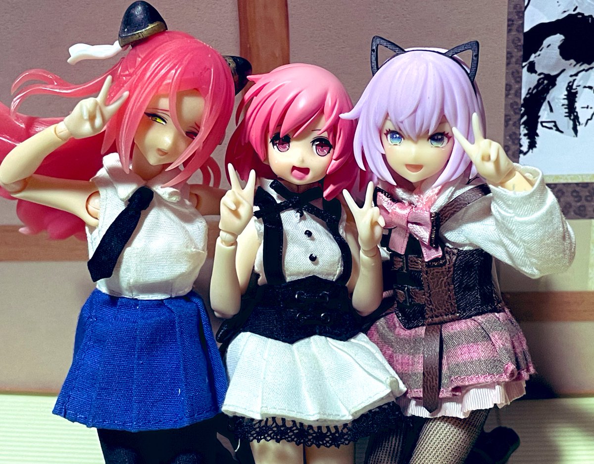 アサルトリリィ9周年おめでとう! 原作での関係性も大切だけど、アクションドールはそれ以前におもちゃなので、好きな組み合わせ、自由な発想で遊んでも楽しいんだよね。 アサリといえばピンク髪のリリィの多さって事で、ピンク髪のこの3人! #アサルトリリィドール部 #アサルトリリィドール9周年