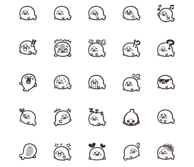 シンプルなアニマル絵文字シリーズ「アザラシ」リリースしました! よかったら見てみてね☺️ [シンプルアザラシ絵文字] line.me/S/emoji/?id=64… #アザラシ #絵文字 #イラスト #illustration