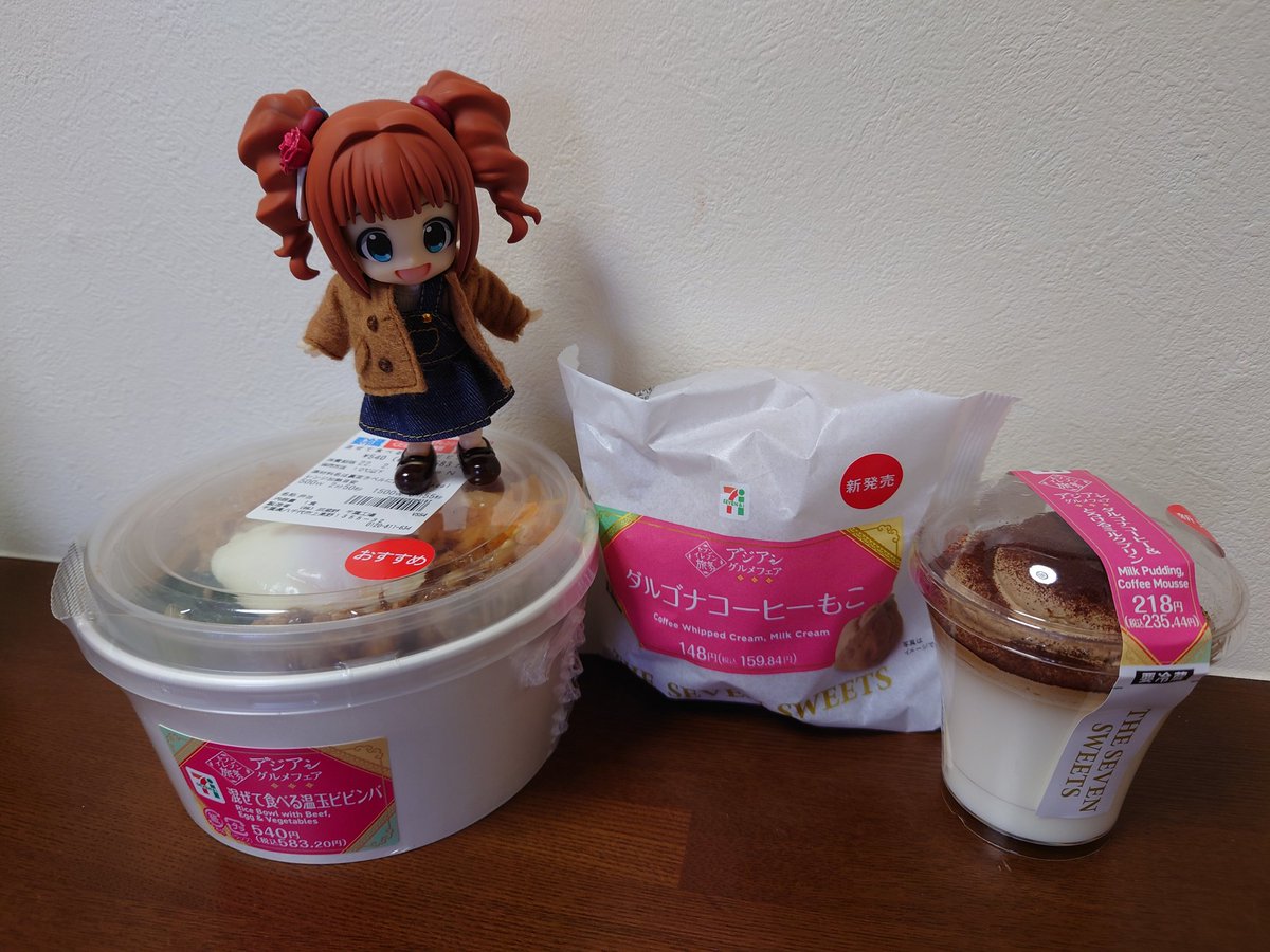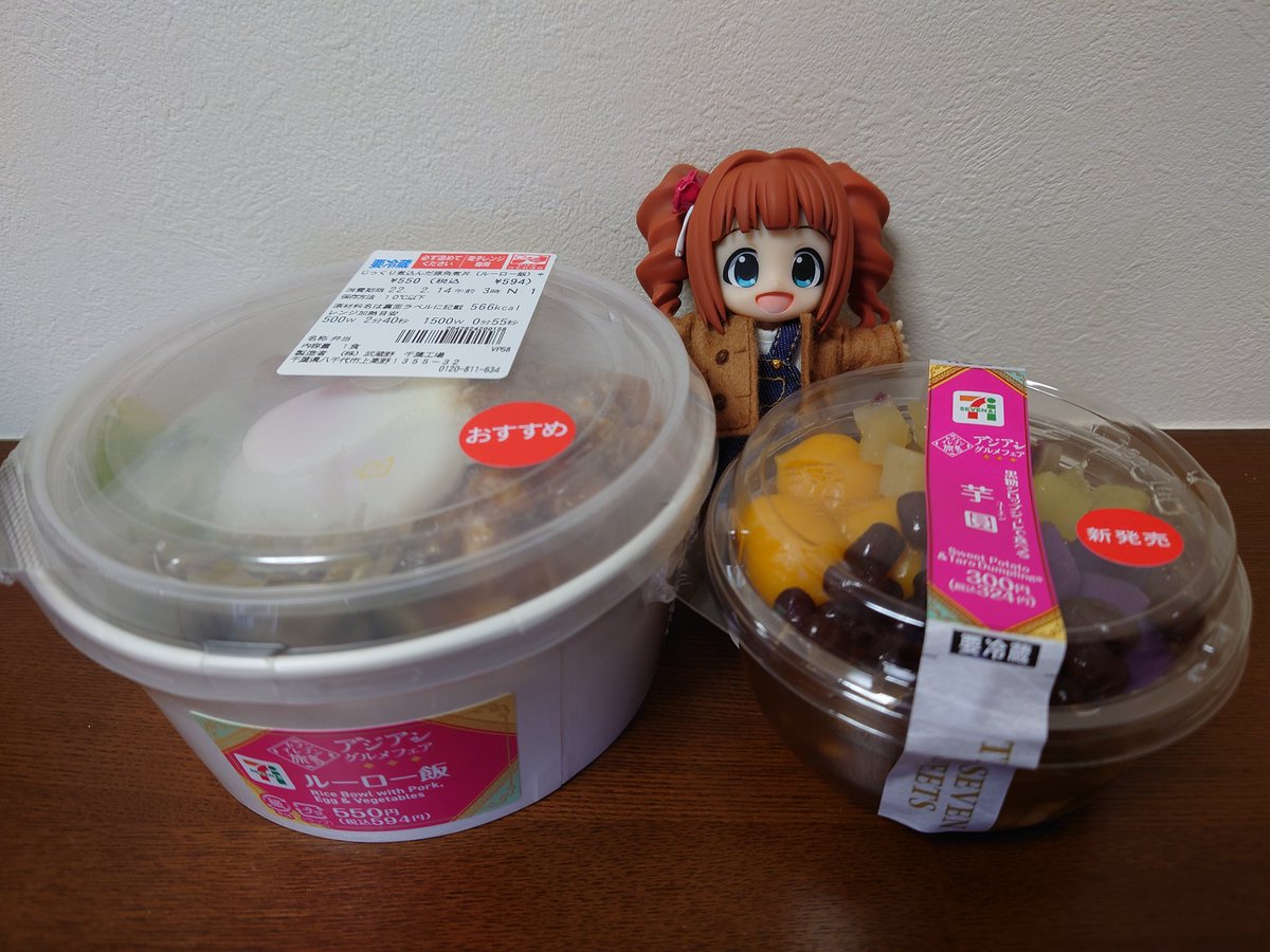 ζ*'ヮ')ζ<アジアン! セブンイレブンのアジアングルメフェアをランチで乗っかってみた。 ルーロー飯と芋圓で台湾! ビビンバとダルゴナコーヒーのデザートで韓国! ルーロー飯、美味しくいただきましたよ。 台北で魯肉飯、食いてーな。 #キューポッシュ #アジアングルメフェア