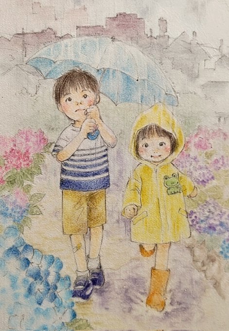 新作です。タイトルは「雨上がりの光」‼️☂️ . 雨上がりの強い日差しをイメージして描きました🌤☂️🤗✨✨ #ishichan #ishichan.e #絵描きさんと繋がりたい #コピックとデジタル #イラスト好き #illustration #雨 #雨上がり #紫陽花 #アジサイ