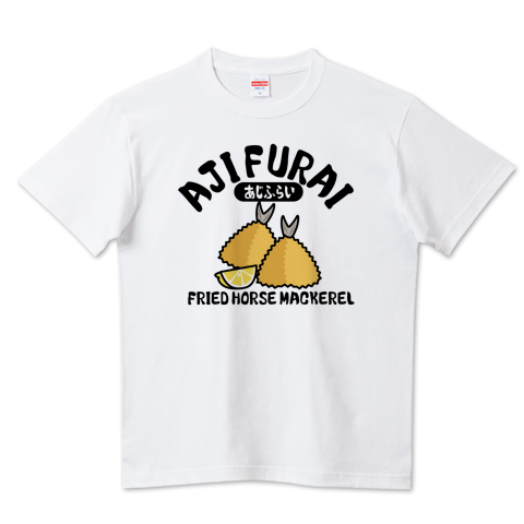 しげ屋です。日曜日のデザイン。 AJI FURAI ttrinity.jp/product/9279348 #Tシャツトリニティ #Tシャツ #イラスト #揚げ物 #アジフライ #ユーモア #おもしろ
