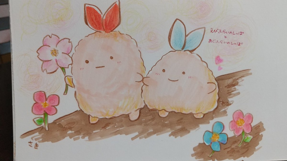 窓の力を借りて、色塗りリベンジ! 3月21日は、あじふらいの日😊🎶🎶 #すみっコぐらし #すみっコ大好き #アジフライの日 #あじふらいのしっぽ #えびふらいのしっぽ #色鉛筆 #コピック #イラスト好きな人と繋がりたい