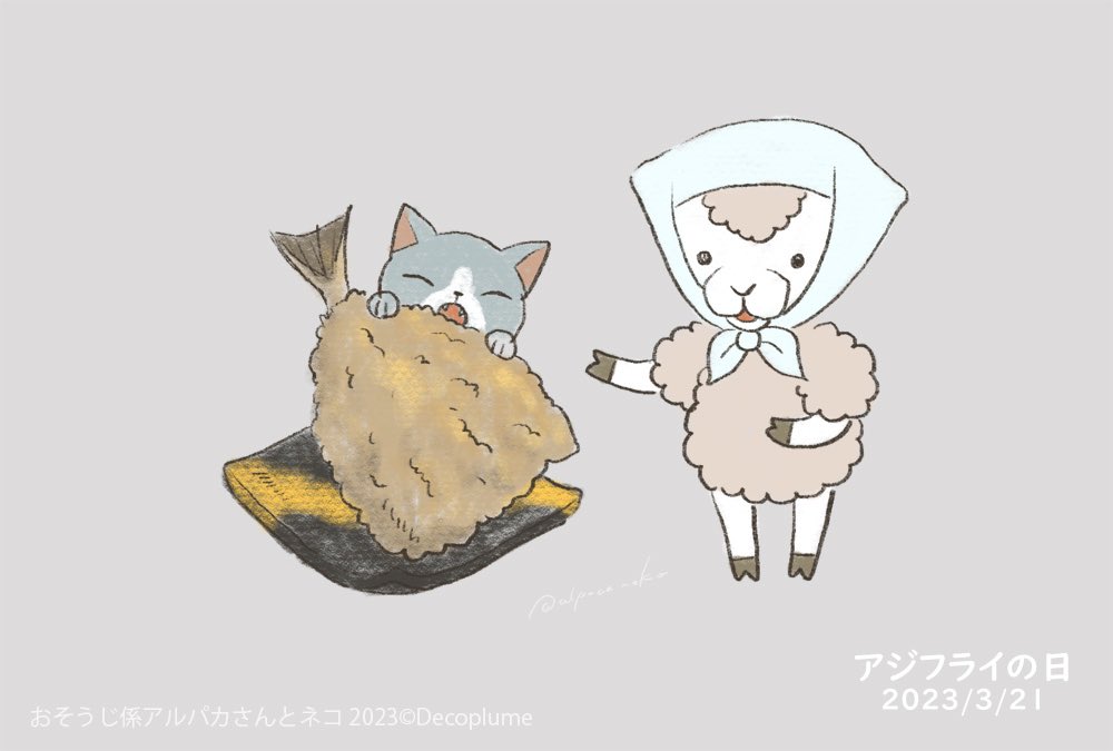 アジ(鰺)が魚ヘンに「参」、2(フ)ラ 1(イ)なので3月21日は #アジフライの日。 (*゚ω゚)ノ 魚が苦手やった頃の私が妙にハマったのがこれ。魚料理やのにウスターソースが、そして🍺ビールが最も合う希有なアテ。 でも非油ギッシュなのはなかなか出逢えませんなぁ。 #1日一点とにかく描く #今日は何の日