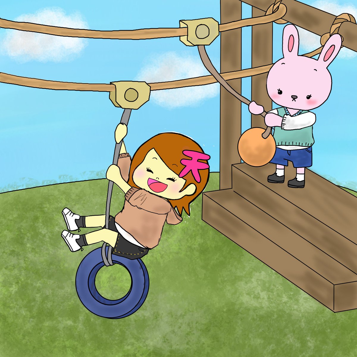 本日『#自然公園の日』でした⛲ Twitterの更新音 が変わったとの事。 常時マナーモードなので聞いた事ないんですよね…更新音😅 変わるんなら一回ぐらい前の聞いとけば良かった…😥 本日も皆様、お疲れ様でした🍻 #初夏の創作クラスターフォロー祭り #イラスト好きさんと繋がりたい #アスレチック
