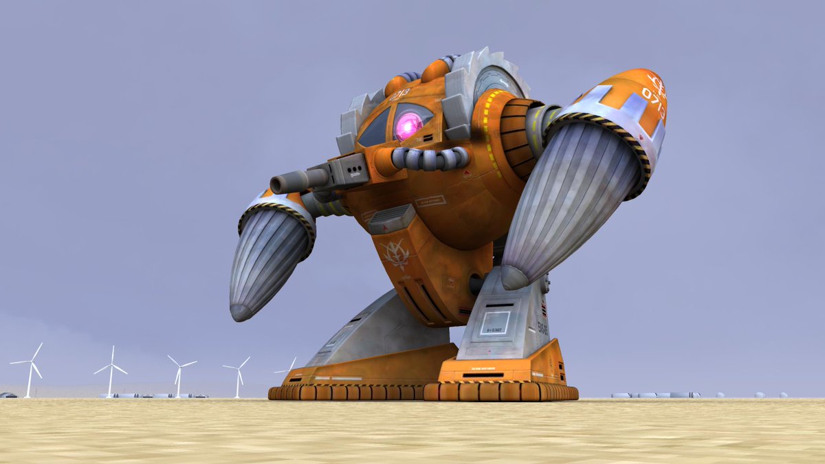 【EMS-05 アッグ作ってみる】 いつもの荒野に立たせて、見え方チェック。 ひとつひとつ段階を踏んでいきましょう。 ● Youtubeチャンネルyoutube.com/channel/UCuH5c… #アッグ #3DCG