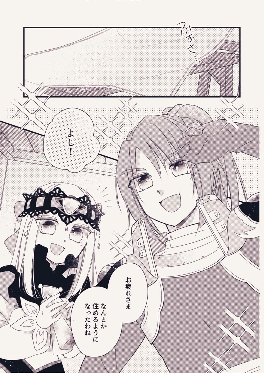 #アップルグミ感謝祭2 にて頒布予定の新刊サンプルです。 ルクティア、アシュナタ、イオアニ、シンアリの各ペアがいわゆる「出られない部屋」に閉じ込められる短編形式、コメディ多めなラブコメ漫画です(1/2)