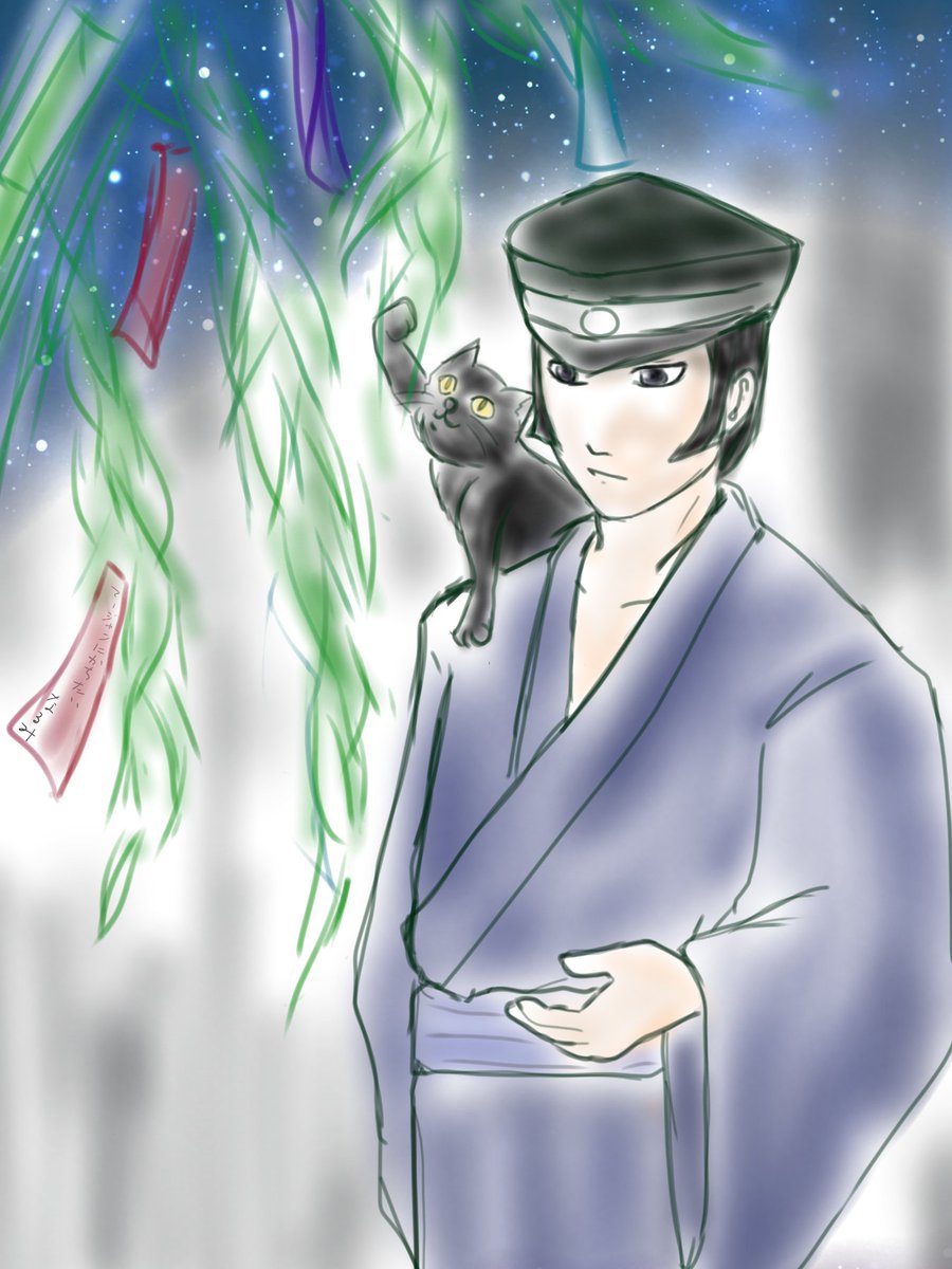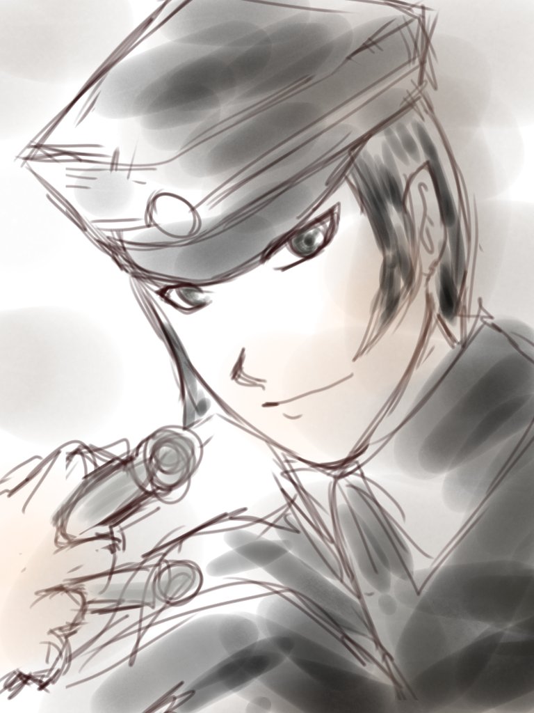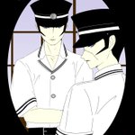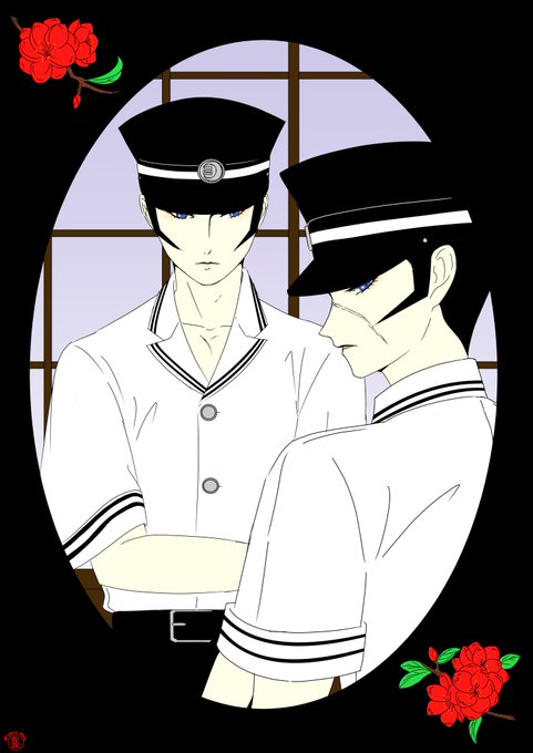 「夏の一幕」 制服って軍服が基になっているらしいので、そこから悩んで考えて描きました。 わかりにくいですが、周りの花は木瓜です。 夏服っていいですよね~🌸 #アトラス葛葉一族の日 #イラスト