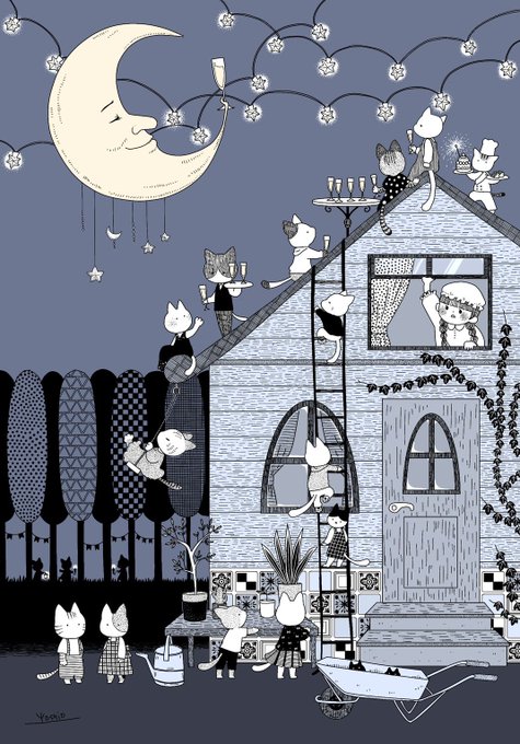 仮題「うちの上でパーティーすな」改めまして、 本題「おじゃましてます」 完成しました👏👏👏👏👏 日々進捗を皆さんと共有しながら描いていくの、めっちゃ楽しかったです!ありがとうございました!!! #アトリエの系譜N #絵描きさんと繋がりたい