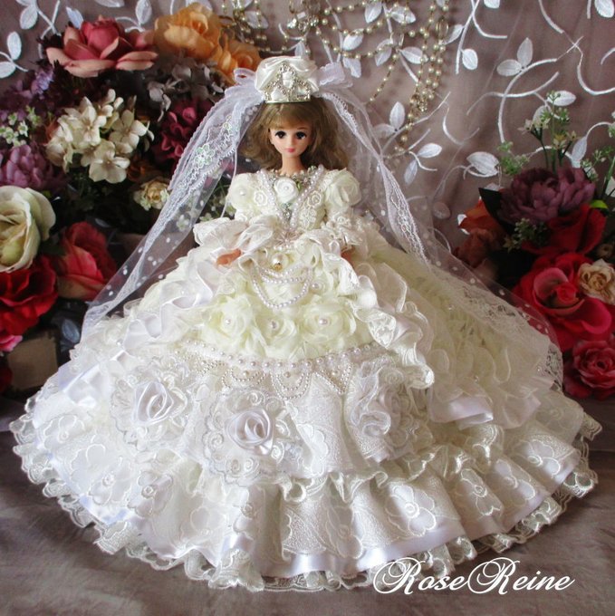 おはようございます😍 アトリエ ローズレーヌです。 新作ドールドレス出来ました❤ ホワイトパールレリーフが艶めく至高のウェディングドールドレス💞💞💞 メルカリからお嫁に行きましたぁ~💞ご購入誠にありがとうございますm(__)m 本日も創作がんばります! #おはドル #アトリエローズレーヌ