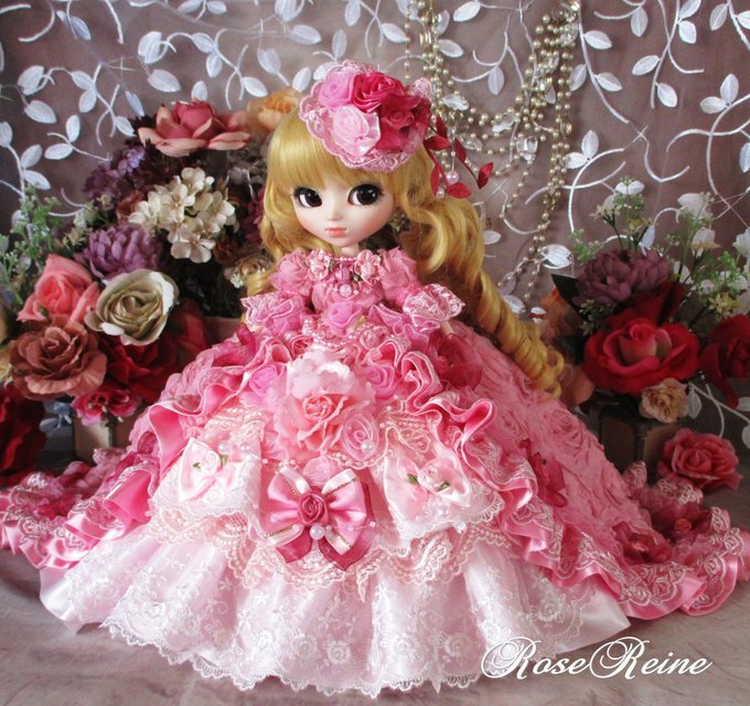 ☆ おはようございます😍 アトリエ ローズレーヌです。 新作ドールドレス出来ました❤ ベルサイユの薔薇 華の舞踏会ローズピンクグラデーションの高級ロココ調ロングトレーンドールドレス💞 本日も創作がんばります! 皆様にも素敵な一日でありますように😍 #おはドル #アトリエローズレーヌ