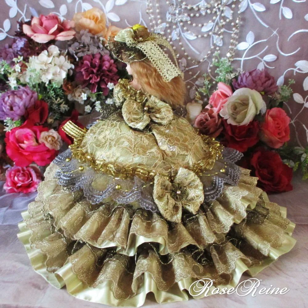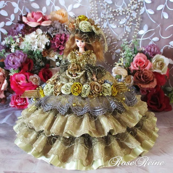 おはようございます😍 アトリエ ローズレーヌです。 新作Doll dress出来ました❤ ヴィクトリア王妃ゴールデンエイジ 豪華なアンティークゴールドのボリュームドールドレス💞 本日も創作がんばります! 皆様にも素敵な一日でありますように😍 #おはドル #アトリエローズレーヌ #うちのこかわいい