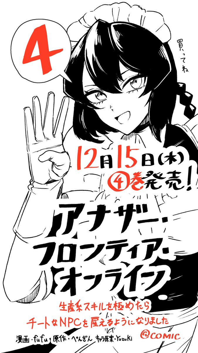アナフロ第④巻12/15に発売です!! よろしくお願いいたします🙏 イラストはメイドのエシャちゃんです #アナザー・フロンティア・オンライン ~生産系スキルを極めたらチートなNPCを雇えるようになりました~ @ COMIC ⬛︎購入ページ bit.ly/3VgYBWK