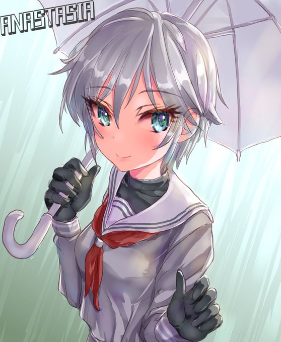 アナスタシアさんを描きました。 思慮深く日本への造詣も深くギャグも強いクールさん。 衣装は制服A・千夜。 雨の中、学校から待ち合わせしてあーにゃんと帰宅したい #デレマス版深夜の真剣お絵かき60分1本勝負 #アナスタシア
