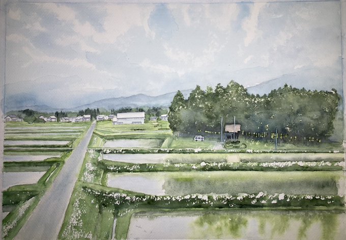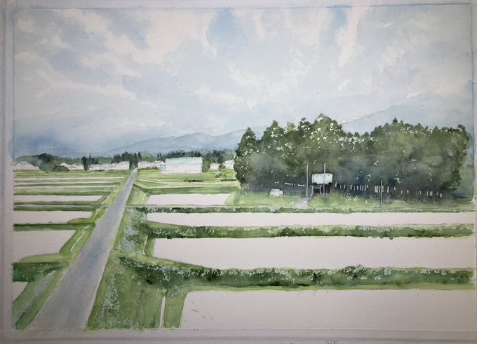 #今月描いた絵を晒そう 今月は、この新緑風景が二枚と試し描き一枚だけ〜 ここ数年間で一番少ないのかもしれない😉😉 来月からは、少し気分を変えて〜 #透明水彩 #透明水彩愛好会 #透明水彩家のつどい #アナログの本気
