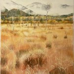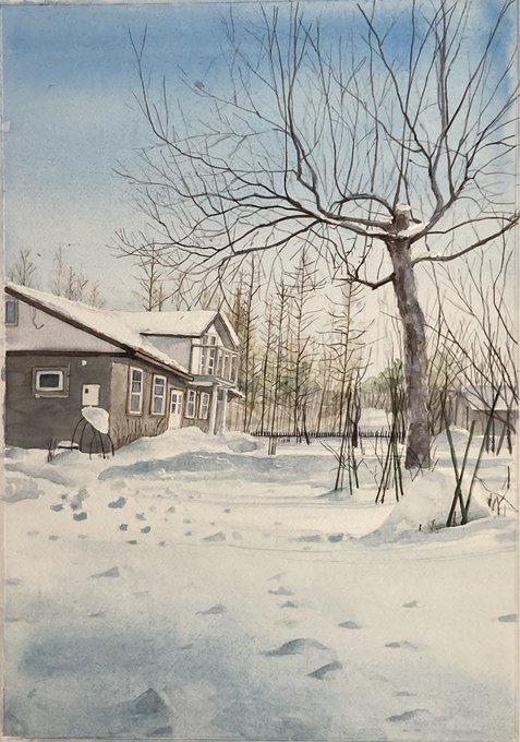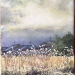 ⭐️新作‥F0サイズの小さい絵です。 午後の散歩の帰り道〜"ススキ原と家並みの向こうに陽が沈む"急に寒くなって来た夕暮れの風景を描きました。 ウォーターフォードF0+透明水彩 #Watercolor #水彩画 #風景画 #透明水彩 #landscape #アナログの本気