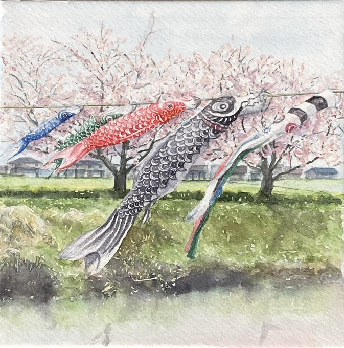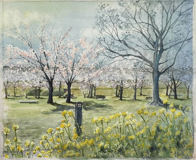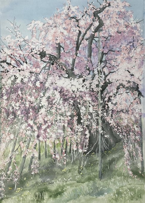 #あなたの春を待ってる作品を見せて 私の春は、"さくら と 菜の花"です😉 ホワイトワトソンF8+透明水彩 #Watercolor #水彩画 #風景画 #透明水彩 #landscape #アナログの本気