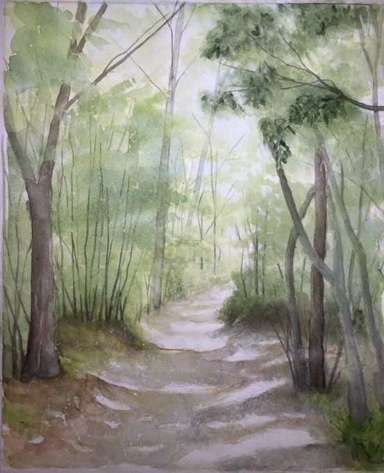 ⭐️今日の一枚 先日アップした岐阜県 鳩吹山の新緑風景‥完成です👍 「途中絵ですか?」と言われるかもですがこれで完成ですww シンプルで光りを感じられる こんな描き方も〜好きなんですよね^_^ ホワイトワトソンF8+透明水彩 #Watercolor #水彩画 #風景画 #透明水彩 #landscape #アナログの本気