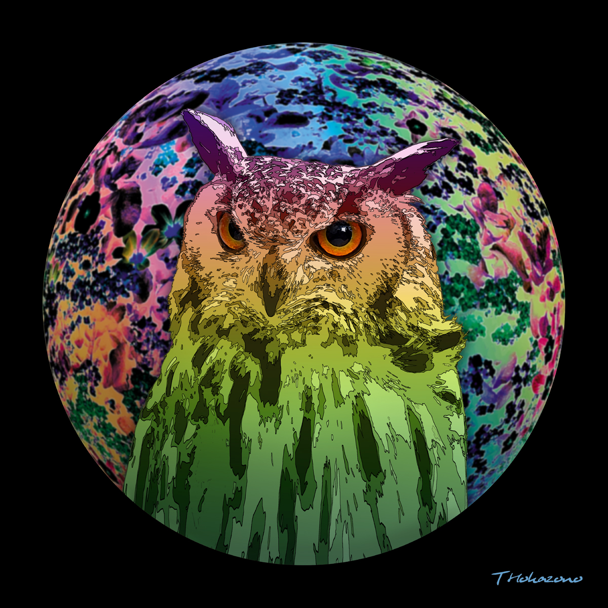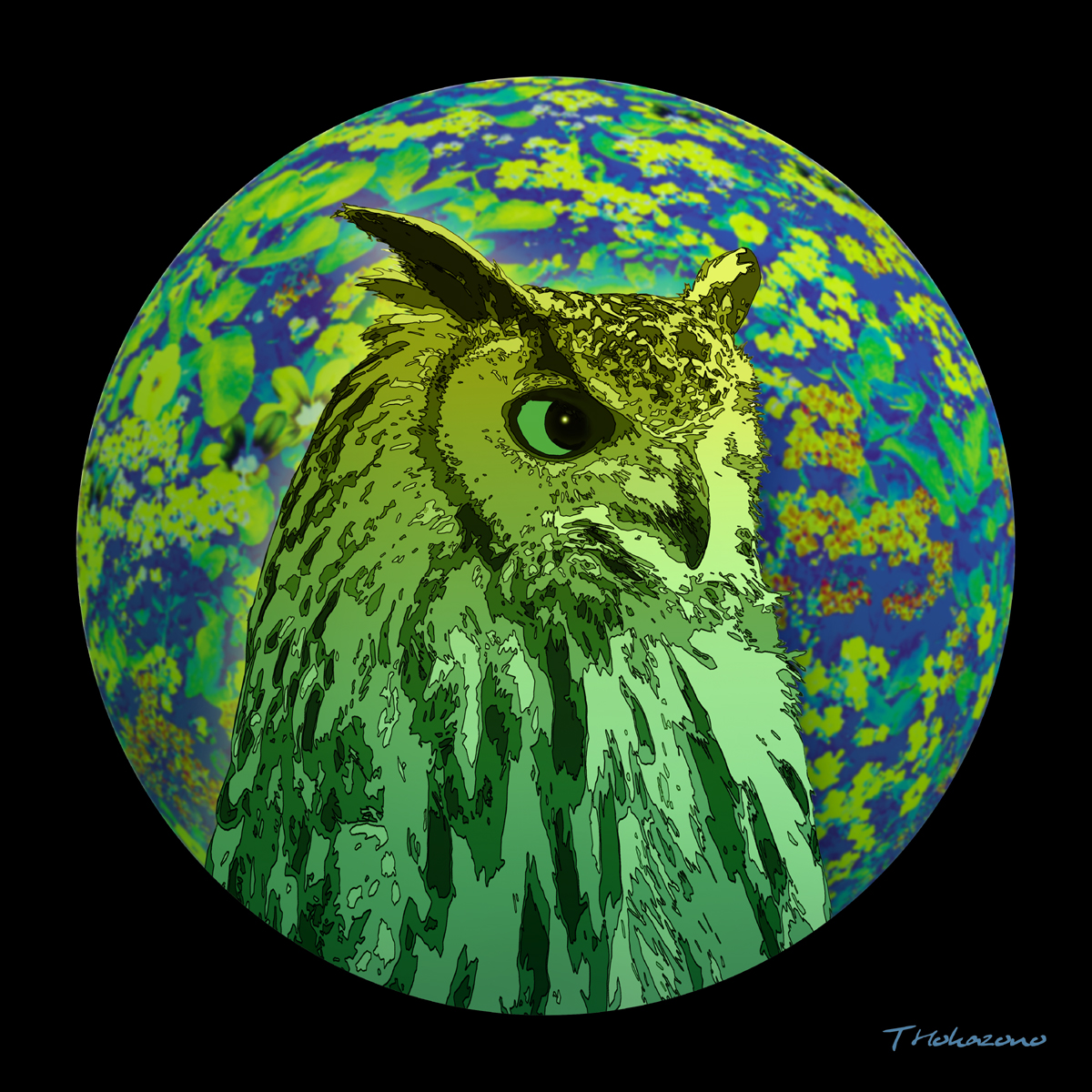 オリジナルのフクロウと花の球を組み合わせて 二つ作ってみました(できたてのほやほや) #フクロウ #アナログデジタル #イラスト #絵描きさんと繋がりたい #イラスト好きさんと繋がりたい #美術ネットワーク #みんなで楽しむTwitter展覧会