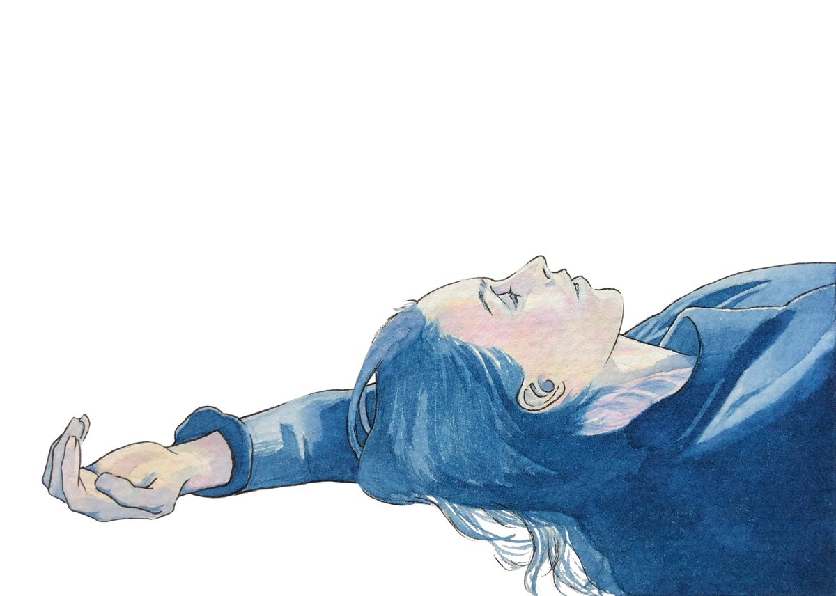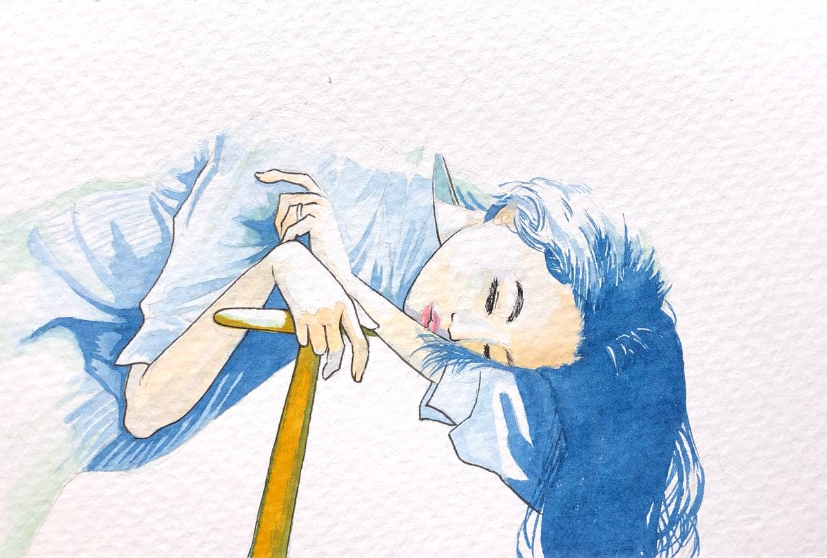 模写楽しいいぃぃぃぃぃぃ 寝そべりの青い女性週間 #お絵描き好きさんと繋がりたい #アナログデジタル #アナログイラスト #イラスト #illustration #写真模写 #水彩画 #watercolorpainting #blue #青 #青い絵