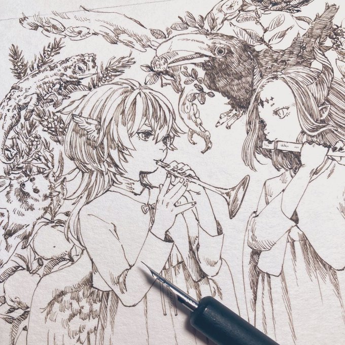 #アナログ作家フェス_ペン 本当は色付けたくないんだけど「色付きの絵しか絵じゃない」と言わんばかりに色付きの絵至上主義の人多いじゃないですか。己の心の平穏の為に描いてるんだからまぁ、好きに描きますが。