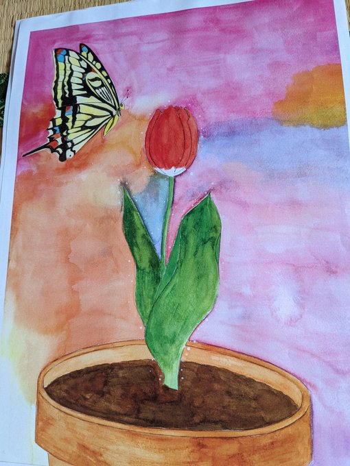 娘の作品を母親の私がTweetしております。最近、娘は植物画に凝っております。花や蝶の繊細さを表現するのに苦労しているようです。 #水彩画 #アナログ絵で魅せてみよ #絵描きさんと繫がりたい