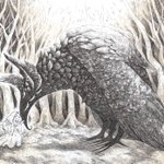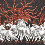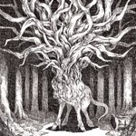 #アナログ絵師の本気を見せてみろ 細密ペン画が好きです。黒いところは何重にもタッチを重ねて表現しています。 絵を探していて気がついたんですけど、鹿的な生き物+枝分かれした木のようなデザイン、好きよね…