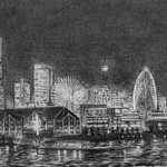 アナログで横浜市を描きました。 夜景を鉛筆で描くのは描きごたえがありました🫠(撮影の都合上画像の明暗を一部フォトショップで加工しております) #絵描きさんと繋がりたい #アナログ絵師の本気を見せてみろ #鉛筆画 #横浜市 #風景画