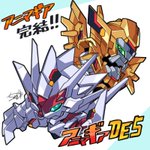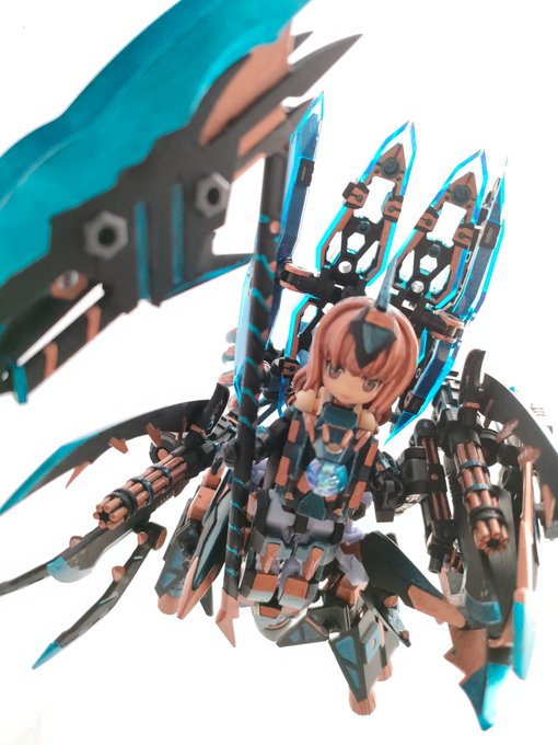 ヘキサギアのレイブレードインパルスとモンハンのルナガロンを参考に、DTAのバディを作ってみました。 レイブレードの展開、操竜?も可能。 おまけでニ脚形態も出来ます。 #デスクトップアーミー #アニマギア