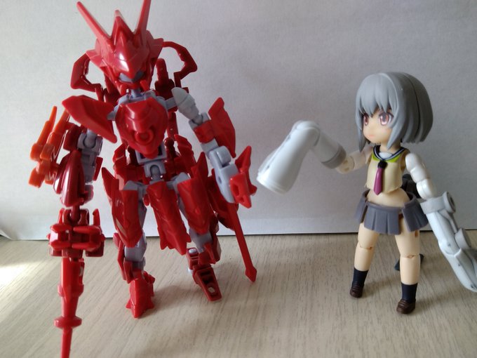 6本腕の朱羅…すなわち『阿朱羅(アシュラ)』だッ! アニマギア04はこれがやりたかったパート2。 6本腕の接続どうしようと思ってたけど、単純接続でも実際やってみたらかっこええじゃんとなった。 #デスクトップアーミー #アニマギアDE