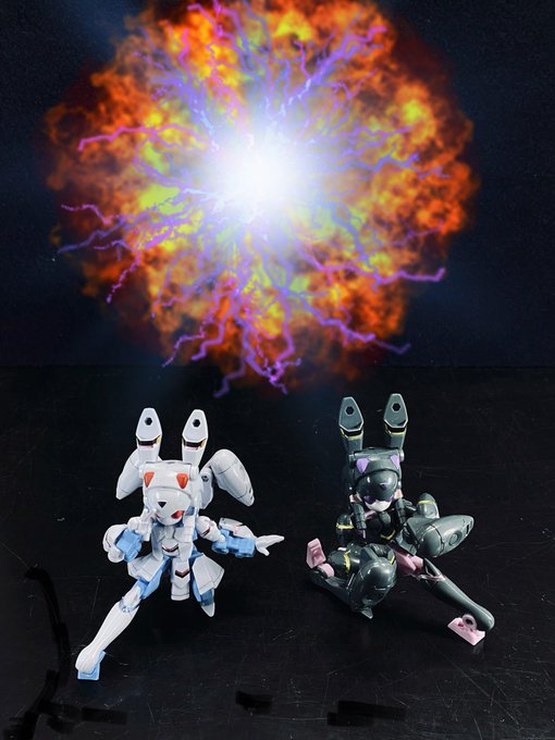 #夜のフィギュア撮影会 テーマ「相棒」 アイドルグループ『ビタースイーツ』の2人の、等身大アバターをイメージしてミキシングしてみました。 #アニマギア #アニマギアDE #アクアシューターズ
