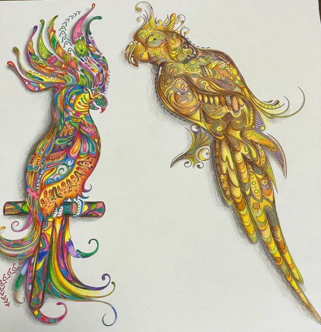 文様ぬり絵の本を見つけて1人テンション⤴︎⤴⤴︎⤴ 文様ぬり絵…ハマりそうです。 細ければ細かいほどワクワク感が強くなります•*¨*•.¸¸♬︎ ぬり絵本の会社で働きたいw #文様ぬり絵 #色鉛筆 #アニマル・ファンタジー #アニマル・ファンタジー世界の美しい文様ぬり絵 #至福の時間はぬり絵