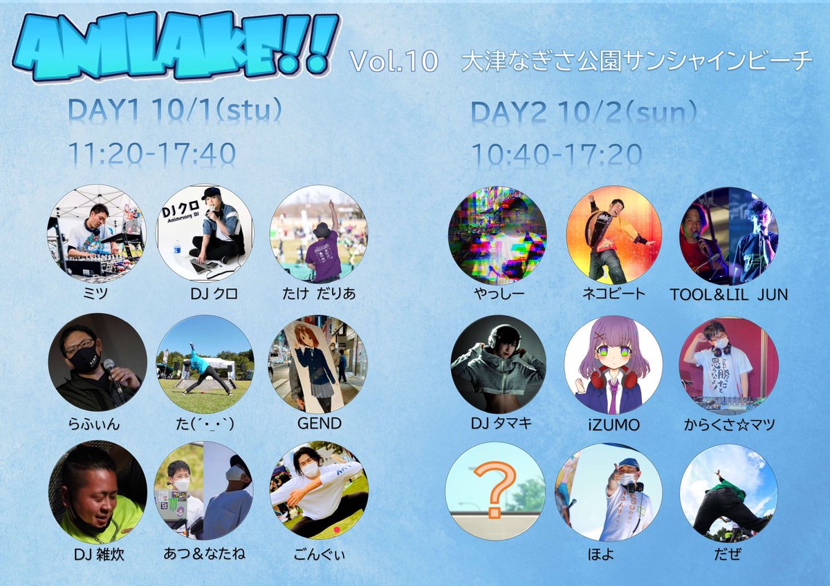 次の野外イベントの出演は ☀️ #アニレーク ☀️ 滋賀の琵琶湖のすぐそばでやる無銭野外イベントです✨✨ 毎回すごい沢山のお客さんが押し寄せてて、#アニメメメスペシャル の雰囲気が気に入った人はアニレークも気にいるはず! 僕は2DAYSのうち、10月1日の方に出演します! 気軽に遊びにきてねー✌️😆