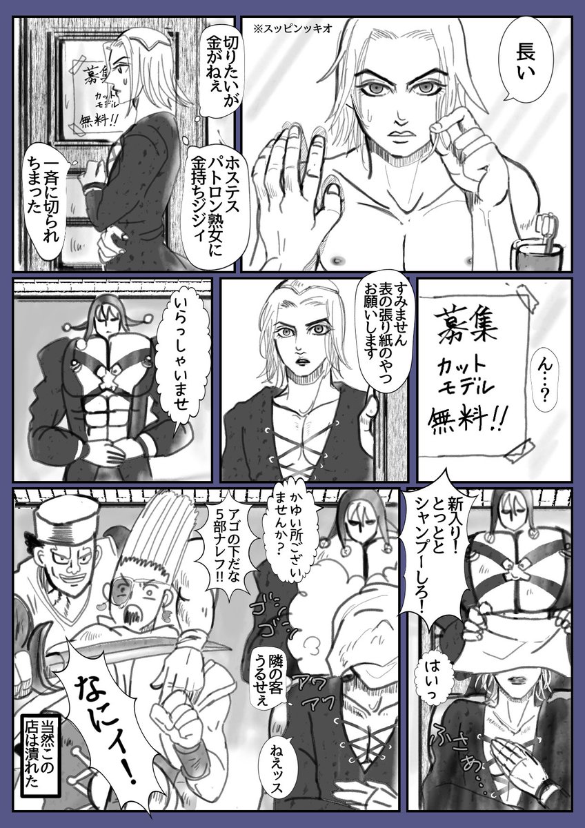 #アバッキオ誕生日カウントダウン #jjba #jjbafanart 3/4 一ヶ月で1㎝前後延びると言われている髪の毛だがベリーショートッキオ(18歳)からロングッキオ(ジョルノ入団時20歳)になる期間までブチャラティチームに入るのはいつッキオ?というポルポル君の首カットモデル話 twitter.com/akizuki_mode/s…