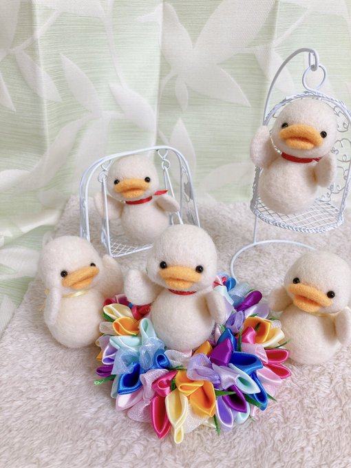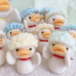 お帽子できました✨ 今回は初のツバつき。 なんか、給食当番にも見えちゃう🤣 Rookの看板あひるのちっちゃい子たち。 お好きなお帽子、ついてます。 #羊毛フェルト #rookの仲間たち #アヒル #関内駅チカアート市