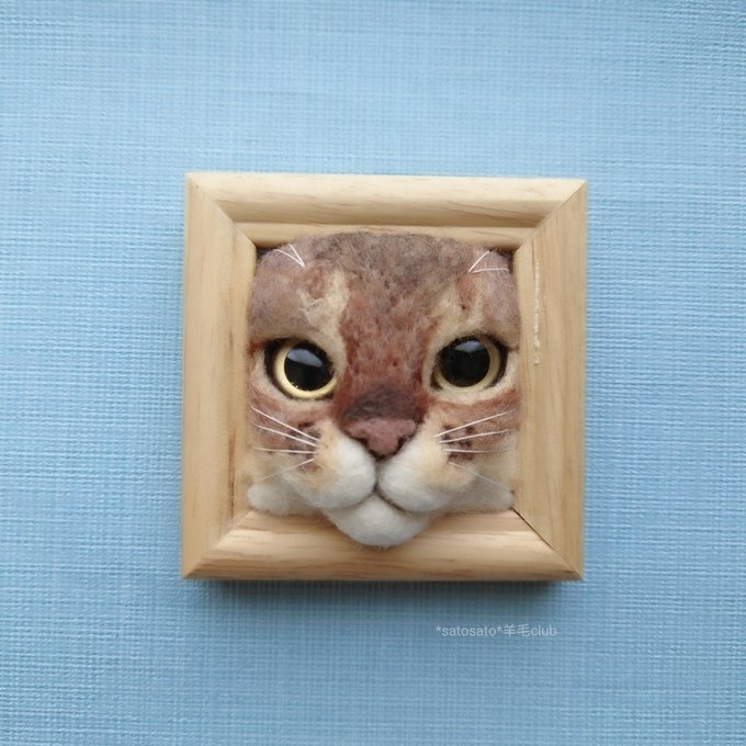 アビちゃん🐱…超ムズい😂 似てなくてすみませーん🙏💦 #羊毛フェルト #猫フレーム #アビシニアン #モデル猫 #デザフェス #猫好きさんと繋がりたい twitter.com/lei_926_/statu…