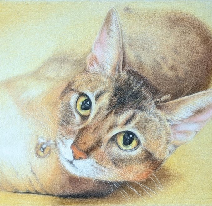 Twitter放置気味でしたが、 ミニ色鉛筆画の新作、YouTubeアップしました🤗 https:/youtu.be/Amjk72e0PXg #メイキング #coloredpencil #アビシニアン #猫好きさんと繋がりがりたい #色鉛筆イラスト #動物イラスト #制作動画 #猫がいる幸せ #猫がいる暮らし #illustration #artworks #リアルな絵