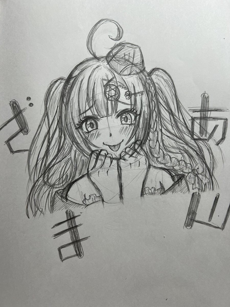 『可愛くてごめん』聴けるのずっと待ってた…うん、可愛かった…😇 落書きだけど、「ざまあw」のところ描きました。ざまあ助かる…( ⁎ᵕᴗᵕ⁎ )❤︎ (日本語字幕生成してスクショしたら、ざまあ→邪魔って言葉変わっての罵倒も助かる) #時羽あいの #ダークアビスアート #アビスレポート