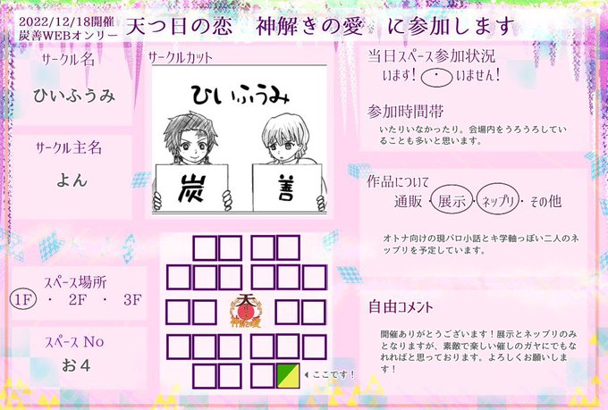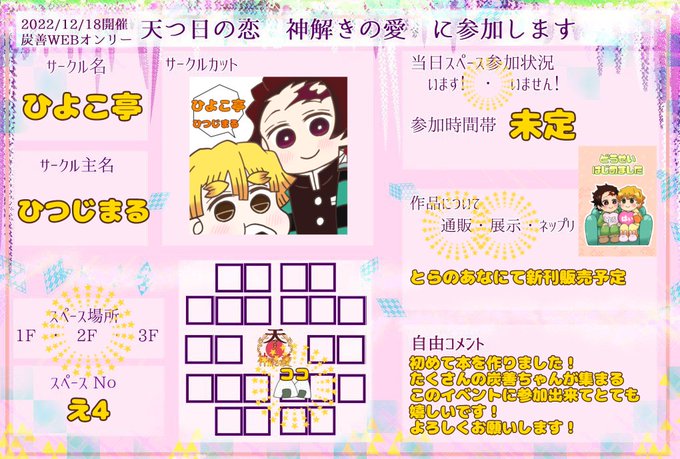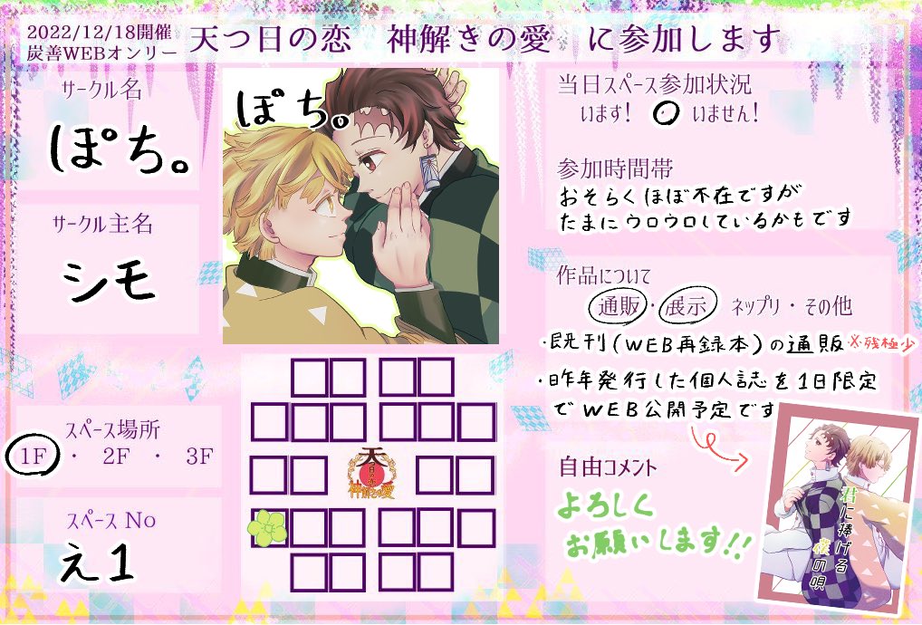 #炭善webオンリー #アマカミ1218 テンプレートお借りしました🙇♀️✨ 残念ながら当日ほぼ不在だと思いますがよろしくお願いします! 既刊の通頒と去年発行した個人誌を限定展示予定です