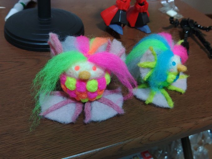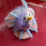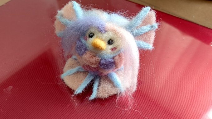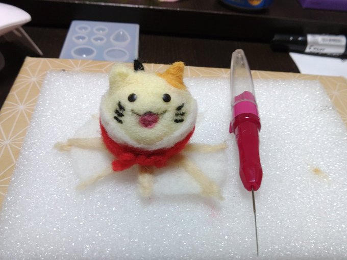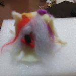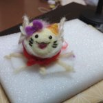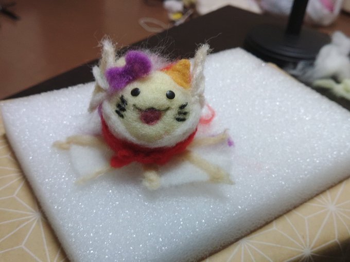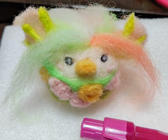 今日の配信の成果…… だいぶみっけちゃんっぽくなった……かな? ちなみに、持ってる樹脂製の目が大きすぎるので急遽レジンとプラモ用塗料で目を作りました(^_^;) #羊毛フェルト #アマビエチャレンジ @mikkeichi