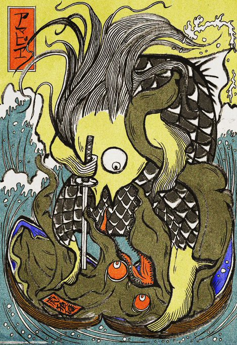 自作のアマビエ様 (最近、アマビエブームは再び去った感じですね) 疫病をドブ貝(の妖怪)に見立ててます #イラスト #イラスト好きな人と繋がりたい #絵描きさんと繋がりたい #アマビエチャレンジ #妖怪