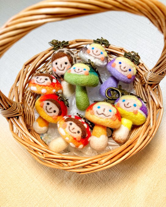 おはようございます! 羊毛フェルトのキノコちゃんキーホルダーシリーズ、昨日minneに補充納品しております! 個人的にはアミガサがお気に入りです(*´▽`*) #minne #minneで販売中 #羊毛フェルト #キノコ #ベニテングタケ #タマゴタケ #アミガサタケ #オオキノボリイグチ