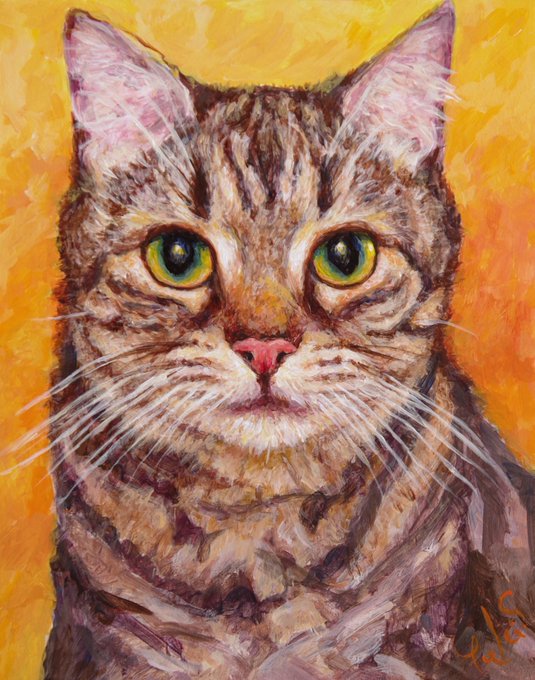 #猫絵 🐈🖼新作です “Gentle Eyes”(パネルにアクリル、F0) モデルは #アメショ の男の子😻上手くはないけど、素朴な暖かさのある絵になればと思って😅 #絵描きさんと繋がりたい #猫好きさんと繋がりたい #アナログ絵 #アクリル画