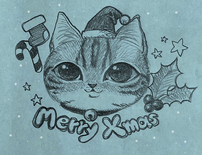 #絵 #イラスト #art #illustration #創作 #original #猫 #ねこ #cat #アメリカンショートヘア #アメショ #猫好きさんと繋がりたい #MerryChristmas #XMAS2022 年賀状やら他の絵を描いていて クリスマス絵は間に合わないと 諦めていたけど強引に鉛筆で描いた。