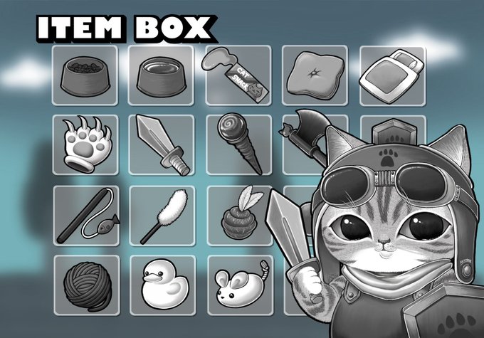 #絵 #イラスト #art #illustration #創作 #original #猫 #ねこ #cat #アメリカンショートヘア #アメショ #猫好きさんと繋がりたい RPG風アイテムボックス画面描けた。 動画ではこの上でカーソル動かす予定。 武器や防具より、冒険に不要な 好きな物やおもちゃが多い方が 猫っぽいなーっていう。 twitter.com/akymmn0809/s…