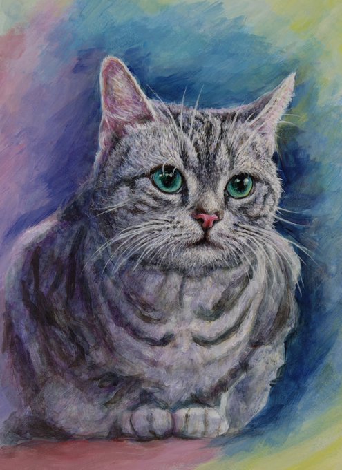 #猫絵 🐈🖼新作です “Beginning of Spring”(ケント紙にアクリル絵具、28×19cm) モデルは #アメショ の女の子😻立春の頃のイメージをなんとなく色味で😅 #絵描きさんと繋がりたい #猫好きさんと繋がりたい #アナログ絵 #アクリル画